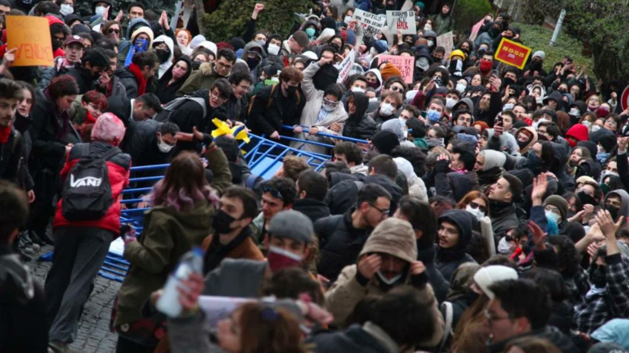 Üniversite gençliği olarak yurttaşlık haklarının, özellikle de seçme ve seçilme hakkının gasp edilmesine karşı günlerdir kampüslerde direndiklerini ifade eden öğrenciler, 67 arkadaşlarının hukuksuz şekilde tutuklu bulunduğunu belirtti. İletişim Fakültesi öğrencisi Rojin Varhan’ın, tutuklu öğrencilere destek çağrısı yaptığı için hiçbir idari süreç işletilmeden yurttan atıldığı hatırlatıldı.