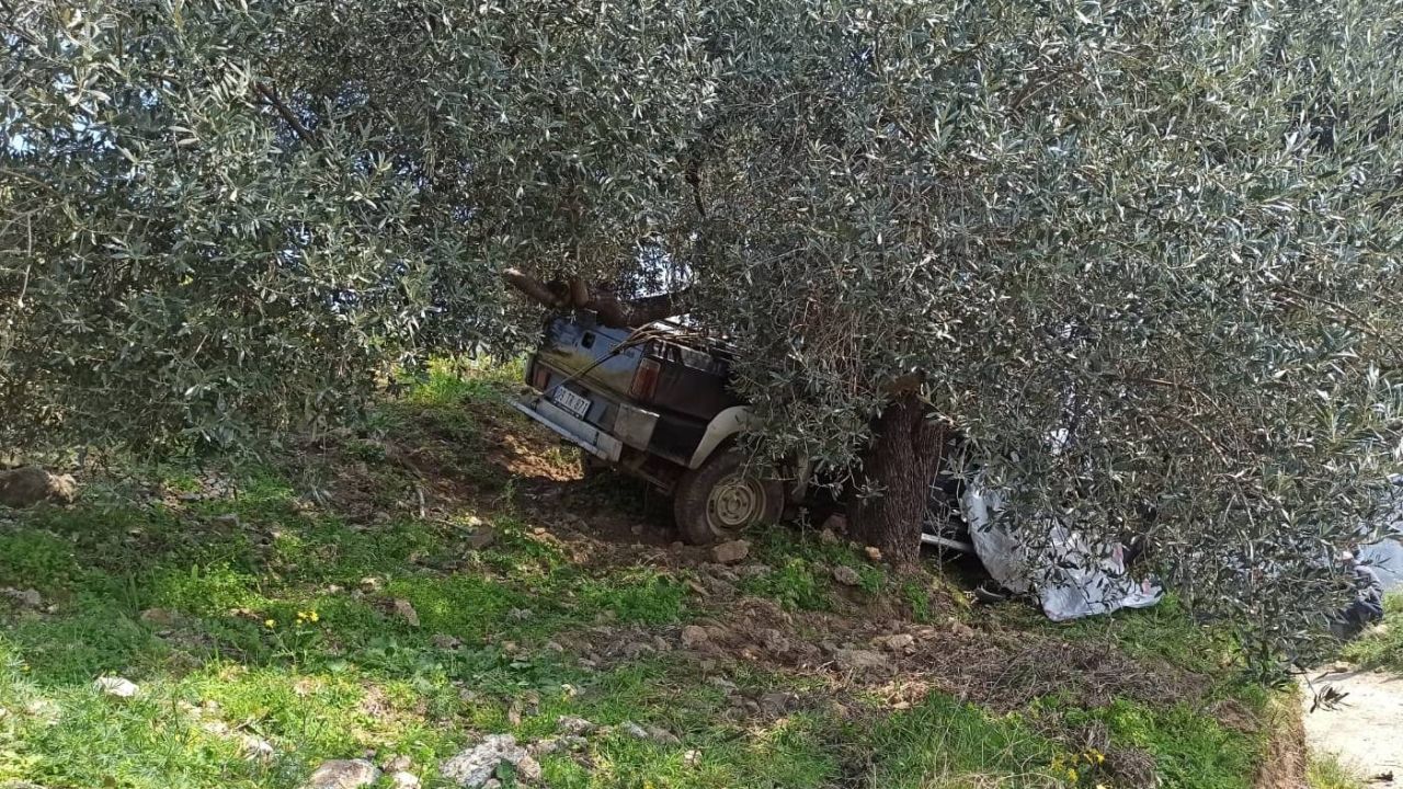 Suat Karakuş'ın (70) kullandığı 09 TR 871 plakalı pikap, Aşağıkayacık Mahallesi Uzundallık mevkisinde sürücünün direksiyon hakimiyetini kaybetmesi sonucu zeytin bahçesine girip ağaca çarptı.