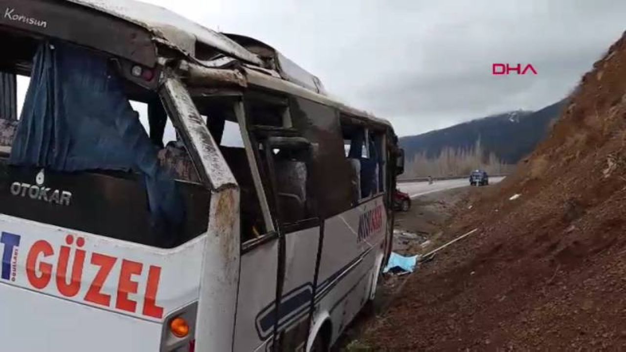 Erzurum'un Oltu ilçesinde fabrika işçilerini taşıyan midibüsün toprak yığınına çarptığı kazada 1 kişi hayatını kaybetti, 11 kişi yaralandı.