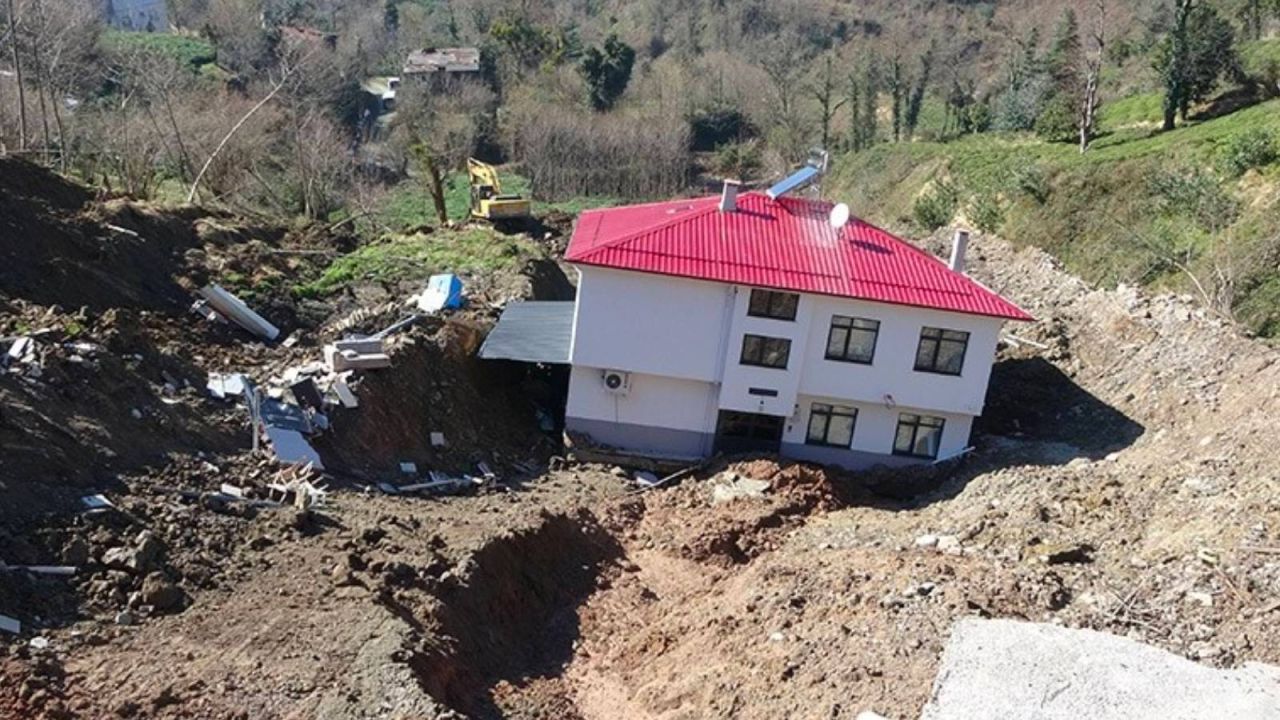 Hopa'da heyelan sonucu iki katlı ev 50 metre sürüklendi: Çatlak oluşmadan temeliyle birlikte kaydı