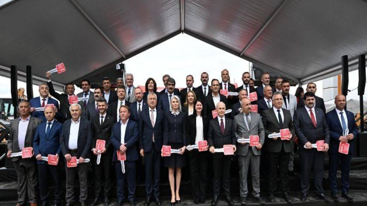 Gölbaşı'nda hibe edilen araçların teslim töreninde, TBB Başkanvekili ve Adana Büyükşehir Belediye Başkanı Zeydan Karalar, belediye görevlilerine araçların sembolik anahtarlarını verdi.
