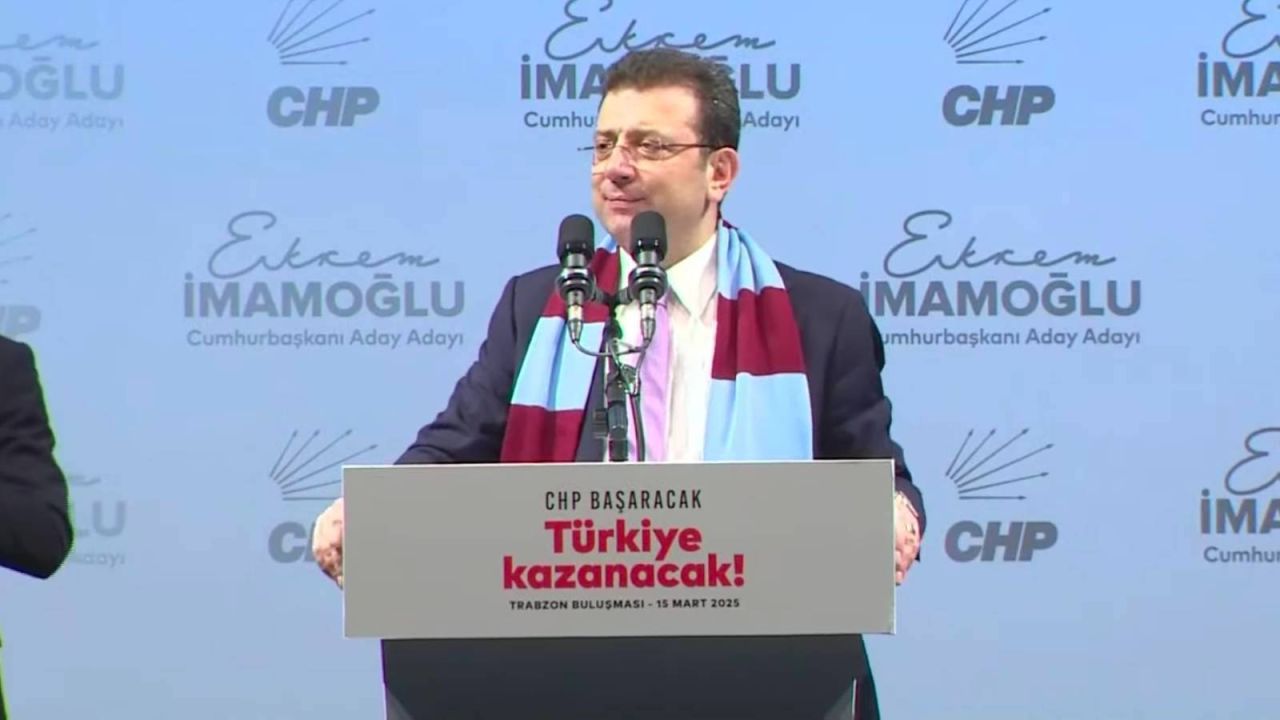 İstanbul Büyükşehir Belediye Başkanı ve CHP'nin cumhurbaşkanı aday adayı Ekrem İmamoğlu, cumhurbaşkanı adayı ön seçimi çalışmaları kapsamında memleketi Trabzon'da vatandaşlara sesleniyor.